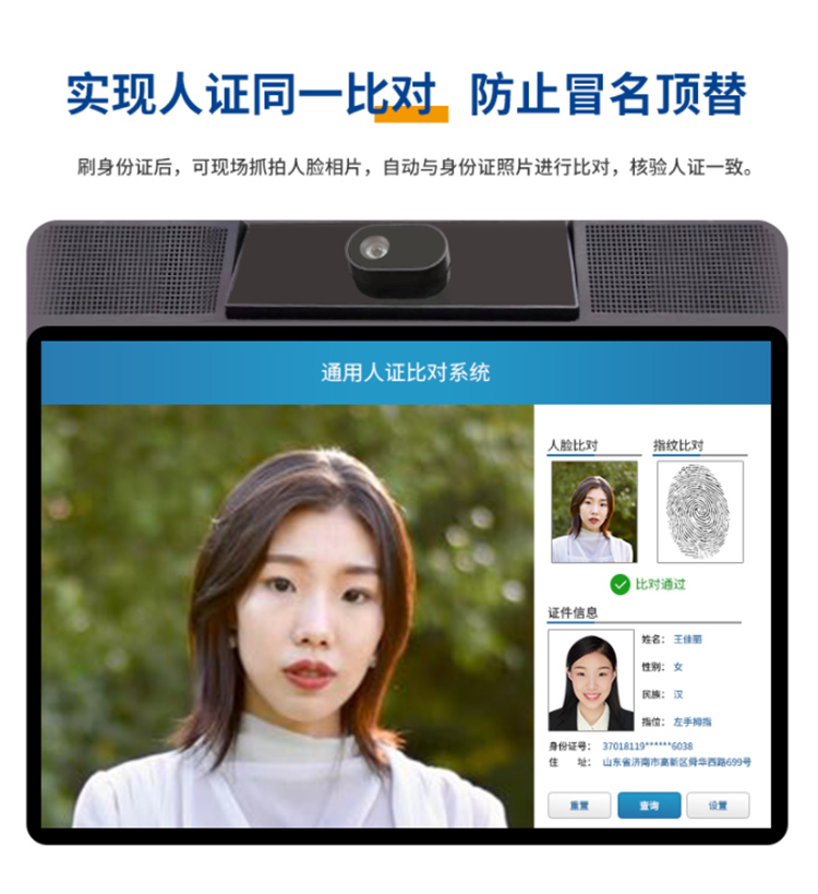 神思SS628-M20人證同一認證終端可以讀取身份證信息,通過人臉識別,對于人臉做一個人證比對,是一