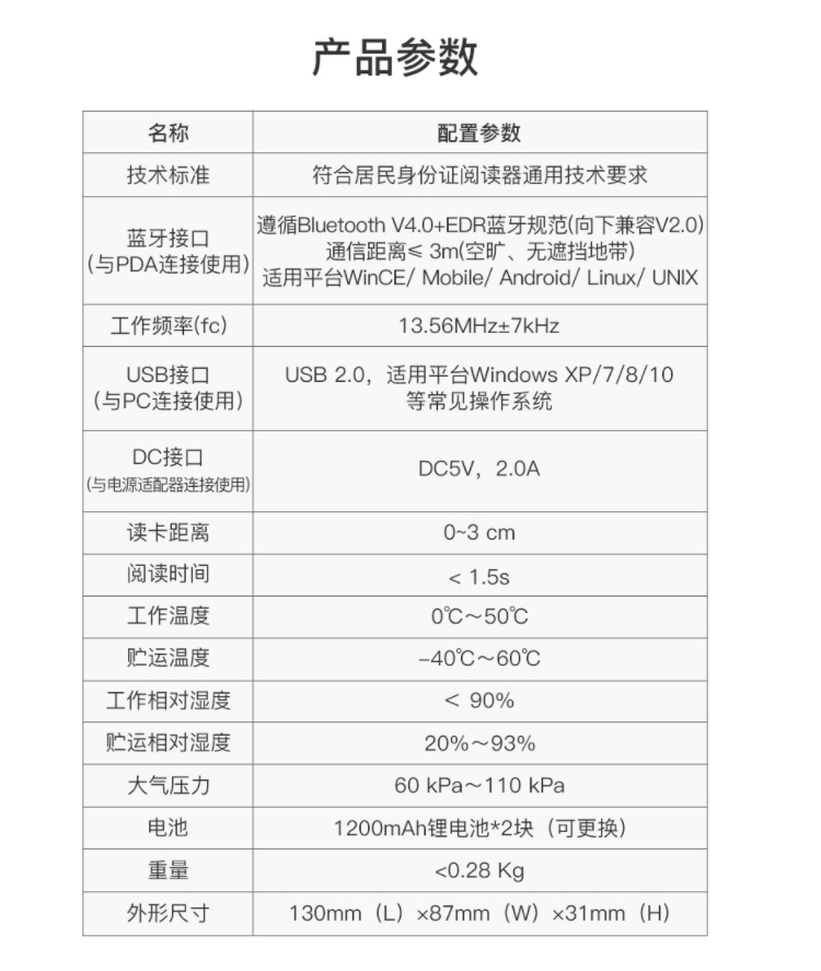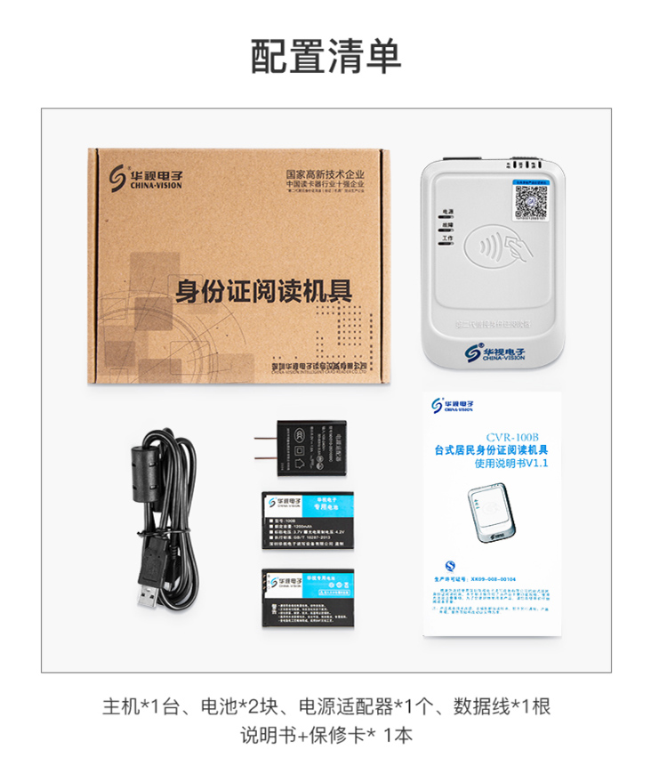 (*由于產(chǎn)品升級或其他原因,華視CVR-100B藍(lán)牙身份證讀卡器產(chǎn)品實際參數(shù)有可能變更,以實際產(chǎn)品為準(zhǔn)。本文中的所有陳述、信息和建議也不構(gòu)成任何明示或暗示的擔(dān)保)